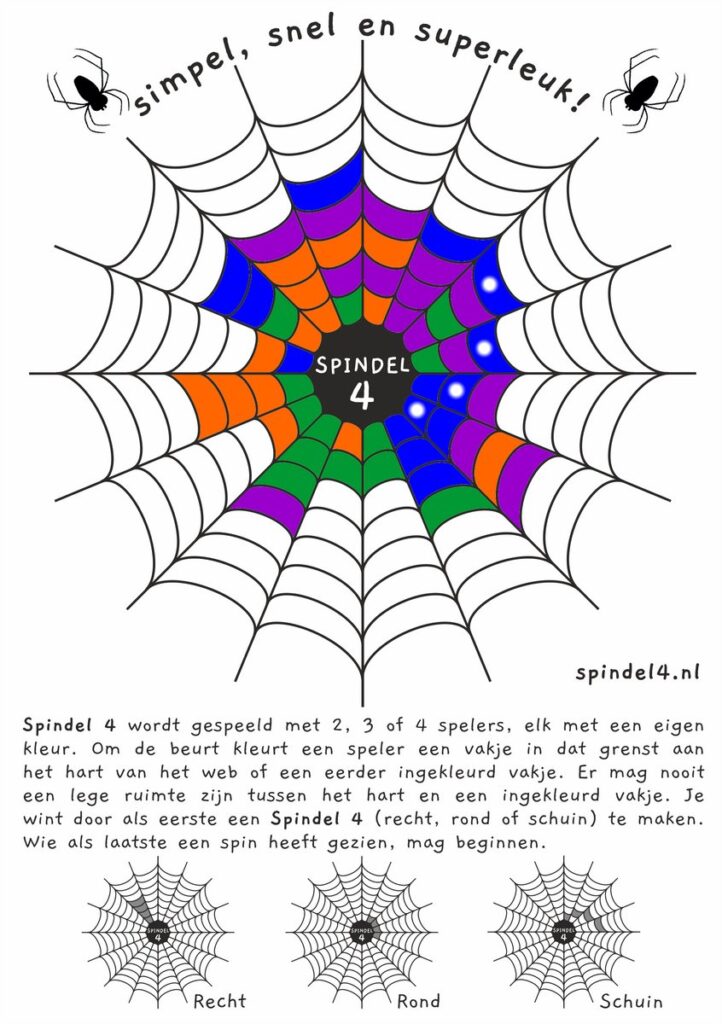 Spindel 4 is een strategisch spel voor 2-4 spelers, geschikt voor alle leeftijden vanaf 8 jaar. Met eenvoudige regels en een speeltijd van 15 minuten combineert het spel tactiek en plezier. Kleur vakjes, blokkeer tegenstanders en vorm als eerste een winnende Spindel! Perfect voor familieavonden en spelletjesfans.